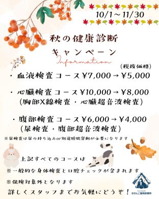 季節の変わり目に体調を崩しやすいこの時期、健康チェックをおすすめしています。